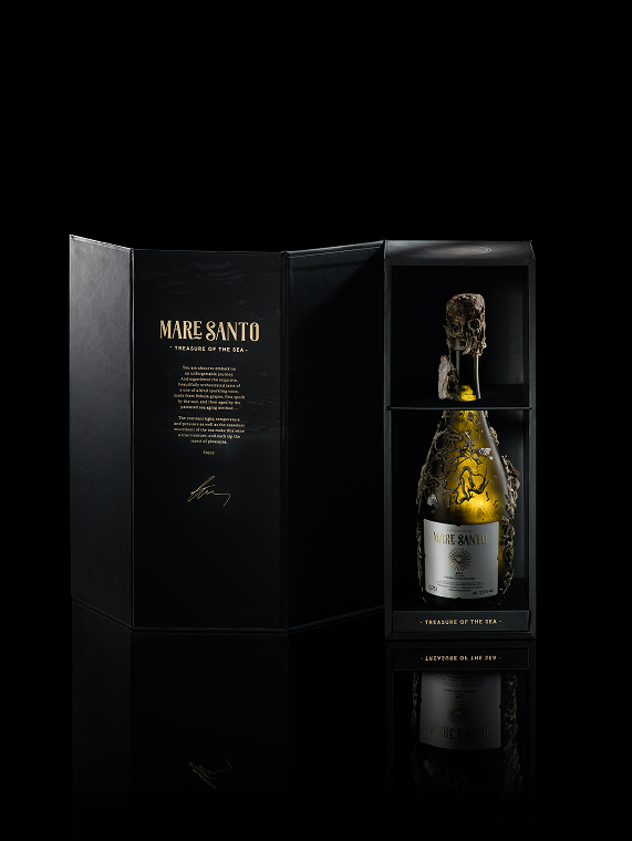 Currents gently shift the bottles, keeping the wine in motion throughout its ageing period. This contributes to Mare Santo’s lively bubbles, a refreshing taste, and a richer sparkle on the palate.